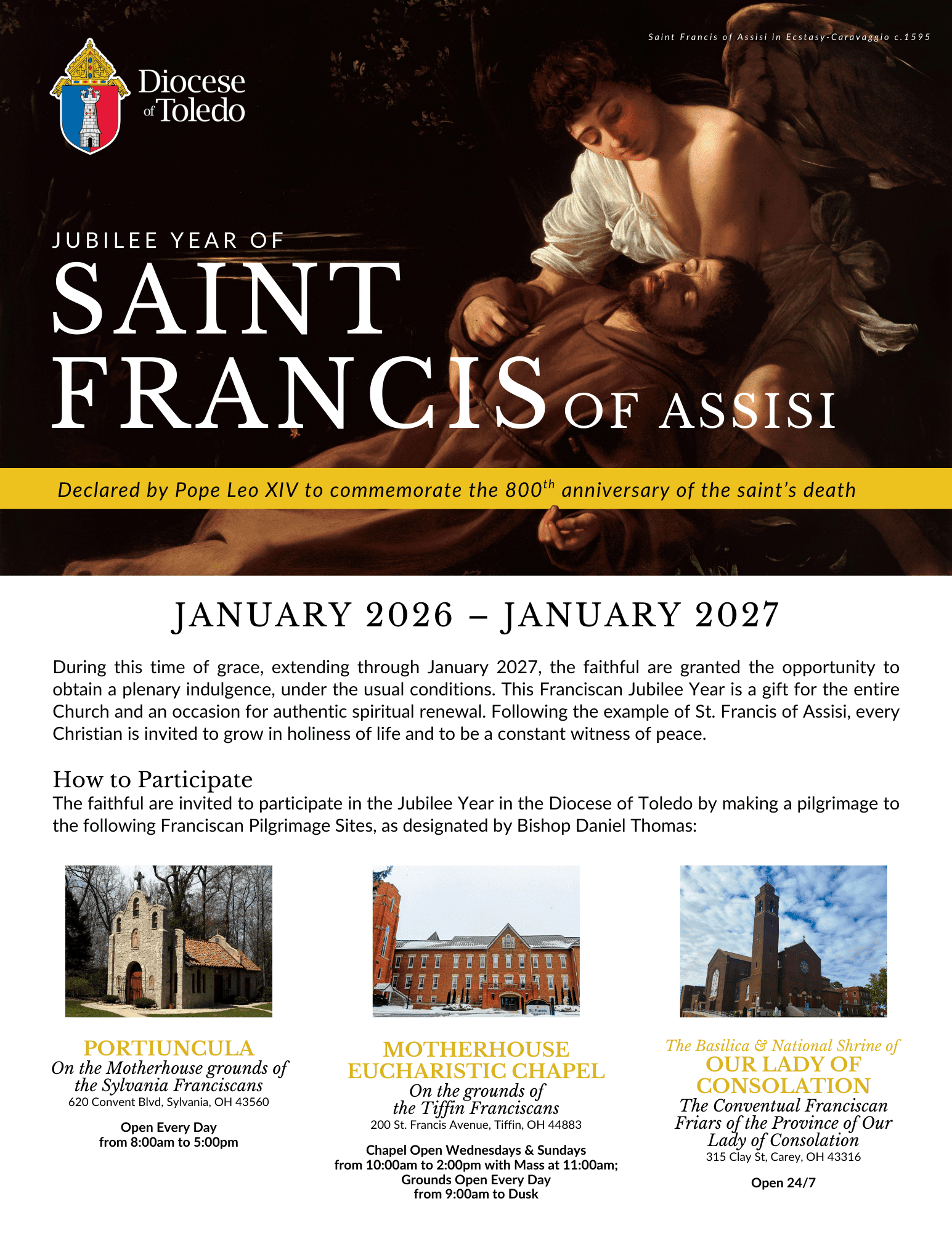 For more info, see the flyer here: Jubilee Flyer, or the Toledo Diocese link here:https://toledodiocese.org/francis